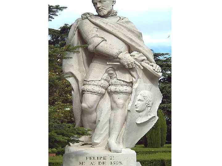 Биография • Филипп II ( 21 мая 1527 — 1 сентября 1598) — король Испании из династии Габсбургов. • Отец: Карл V, император Священной Римской империи он же король Кастилии и Арагона Карлос I • Мать: Изабелла Португальская • Филипп с 1554 г. был королём Неаполя и Сицилии, а с 1556 г. , после отказа своего отца от престола стал королём Испании, Нидерландов и обладателем всех заморских владений Испании. В 1580 присоединил также Португалию и стал её королём (как Фелипе I, порт. Filipe I).