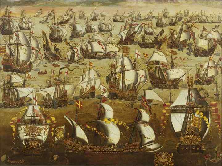 Небодимая армада • Ещё будучи наследником престола, в 1554 г. , Филипп женился на Марии Кровавой, королеве английской; когда Мария умерла, он желал жениться на её преемнице Елизавете, но последняя искусно отклонила это сватовство. По мере того, как росли успехи Нидерландов, Елизавета обнаруживала все больше и больше сочувствия к их делу. Френсис Дрейк, покровительствуемый английским правительством искатель приключений, нападал на берега заатлантических владений Испании, не щадя иногда и побережья Пиренейского полуострова. Наконец, когда Елизавета послала нидерландцам помощь в виде большого отряда пехоты и артиллерии, Филипп решился нанести решительный удар «еретичке» ; казнь Марии Стюарт только ускорила его решение. В 1588 г. Филипп послал к берегам Англии под начальством Медина-Сидонии огромный флот (130 больших военных кораблей) — «Непобедимую Армаду» , которая погибла от бури и удачных нападений оборонительной английской эскадры. Филипп принял известие об этом несчастье с необыкновенным наружным спокойствием, но на деле, как это было ясно для приближенных, оно весьма сильно угнетало его. Мира с Елизаветой он все же не заключил и до конца его жизни Испания подвергалась жестоким нападениям со стороны английского флота: казна Филиппа была до такой степени истощена, что выстроить маломальски сильный оборонительный флот он решительно не мог. Англичанам удавались самые отважные высадки: например незадолго до смерти Филиппа они сожгли Кадис.