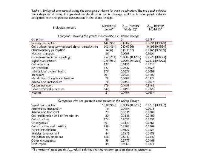 Проверялись две модели эволюции: • М 1 Замены на ветке к человеку являются нейтральными. (отвергнута для 1216 генов (15. 9%) при p<0. 05) • М 2 Замены в линии человека либо нейтральны, либо дестабилизирующие (альтернатива – наличие адаптивных замен) (отвергнута для 667 генов (8. 7%) при p<0. 05) Ч M ~5 -8 млн лет назад Ш