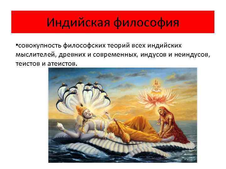 Индийская философия • совокупность философских теорий всех индийских мыслителей, древних и современных, индусов и неиндусов, теистов и атеистов.