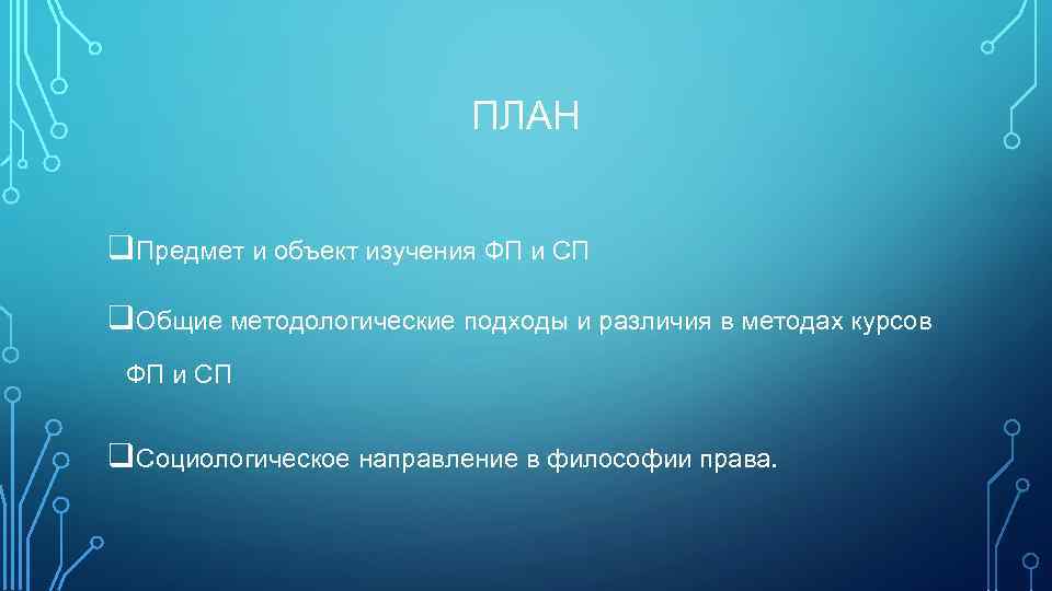 ПЛАН q. Предмет и объект изучения ФП и СП q. Общие методологические подходы и различия в методах курсов ФП и СП q. Социологическое направление в философии права.