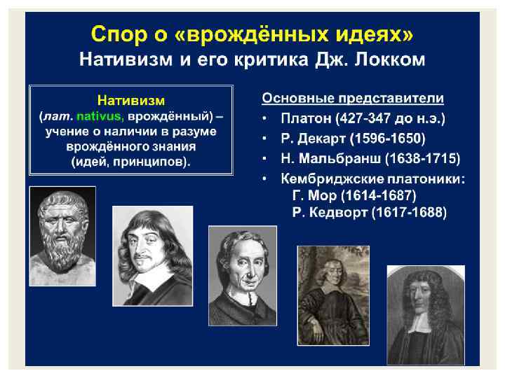 СПОР О «ВРОЖДЁННЫХ ИДЕЯХ» НАТИВИЗМ И ЕГО КРИТИКА ДЖ. ЛОККОМ