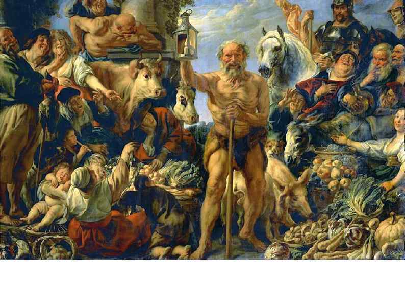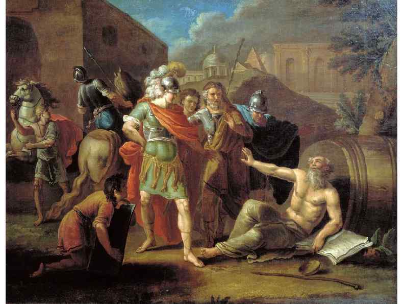 Диоген просил подаяние у статуй, «чтобы приучить себя к отказам» . Когда Диоген просил у кого - нибудь взаймы денег, то говорил не «дайте мне денег» , а «дайте мои деньги» . На вопрос, какое вино ему пить вкуснее, он ответил : «Чужое» . Однажды Диоген на городской площади начал читать философскую лекцию. Его никто не слушал. Тогда Диоген заверещал по - птичьи, и вокруг собралась сотня зевак. Вот, афиняне, цена вашего ума, - сказал им Диоген, - Когда я говорил вам умные вещи, никто не обращал на меня внимания, а когда защебетал, как неразумная птица, вы слушаете меня разинув рот. Среди бела дня бродил по Афинам со светильником в руке и возглашал «Ищу человека!» . Презрение к славе и власти, как наиболее яркому ее воплощению, отразилось в беседах Диогена с Александром Македонским, когда на слова царя «Проси у меня, чего хочешь!» последовал ответ «Не засти мне солнца» . Диоген говорил, что философия подготовила его к любым поворотам судьбы, и более всего ценил в жизни «свободу высказываться» .