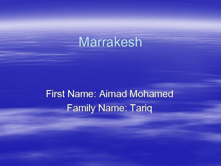 Marrakesh First Name: Aimad Mohamed Family Name: Tariq