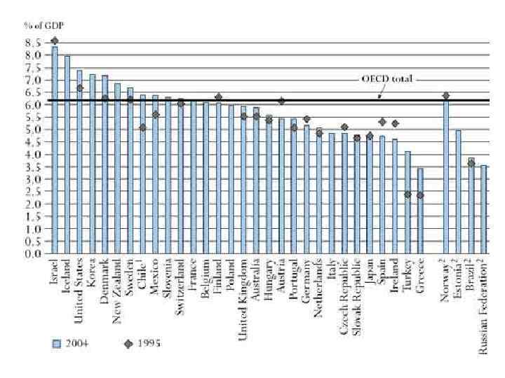 РЕЙТИНГ СТРАН МИРА ПО УРОВНЮ РАСХОДОВ НА ОБРАЗОВАНИЕ The World Bank: World Development Indicators 2014 МЕ СТО СТРАНА РАСХОДЫ (% ОТ ВВП) 14. 0 12. 9 1 Тимор 3 Куба 15 Норвегия 7. 3 34 Франция 5. 9 35 Израиль 5. 8 45 Великобритания 5. 6 52 Соединенные Штаты Америки 5. 4 57 Украина 5. 3 74 Италия 4. 7 79 Германия 4. 6 98 Россия 4. 1 104 Япония 3. 8