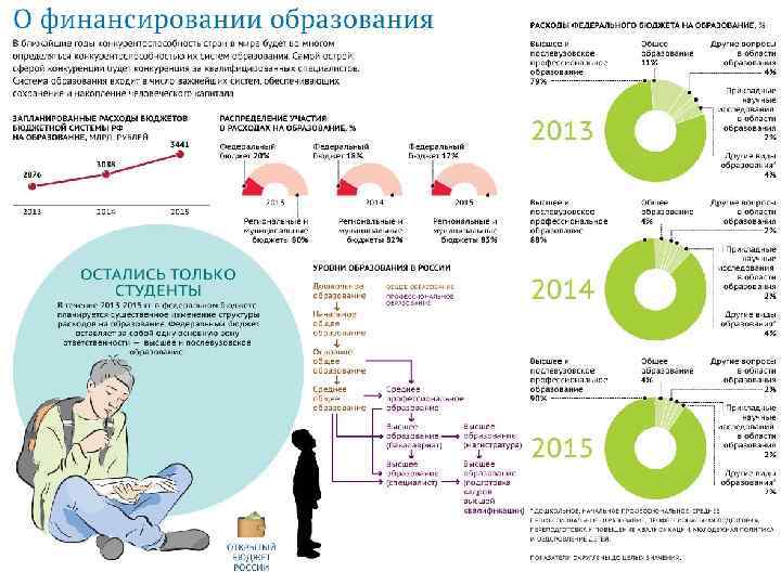 Образование в проекте федерального бюджета на 2015 -2017 гг. Образование Дошкольное образование Государственная программа Российской Федерации "Развитие образования" на 2013 - 2020 годы Подпрограмма "Развитие дошкольного, общего и дополнительного образования детей" государственной программы Российской Федерации "Развитие образования" на 2013 - 2020 годы Расходы на обеспечение деятельности (оказание услуг) государственных учреждений в рамках подпрограммы "Развитие дошкольного, общего и дополнительного образования детей" государственной программы Российской Федерации "Развитие образования" на 2013 - 2020 годы Среднее профессиональное образование Государственная программа Российской Федерации "Развитие образования" на 2013 - 2020 годы Подпрограмма "Развитие профессионального образования" государственной программы Российской Федерации "Развитие образования" на 2013 - 2020 годы на 2015 год 12 419 459 521, 1 458 570, 5 218 477, 4 на 2016 год 12 753 084 055, 0 527 024, 5 214 946, 3 на 2017 год 12 874 560 925, 6 538 919, 9 226 723, 9 218 477, 4 214 946, 3 226 723, 9 43 037, 9 43 222, 2 41 481, 7 41 866, 5 42 074, 2 40 333, 1