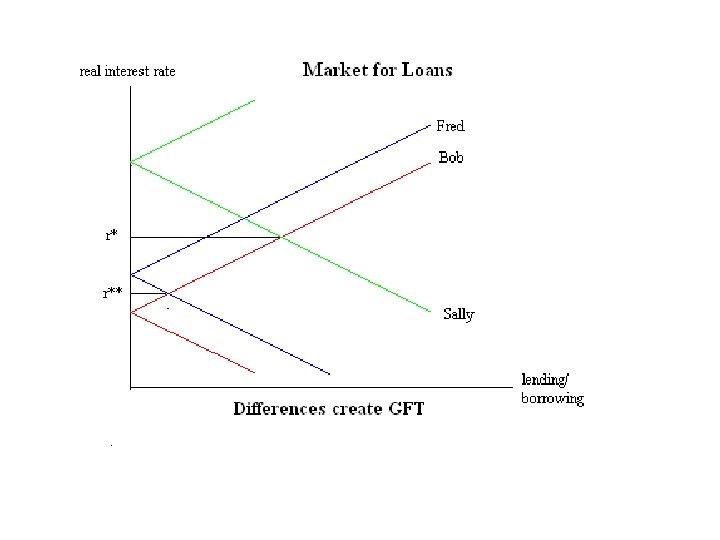 Fisher Model Outline of Topics • • Demand for loans (business) Differences and Gains from Trade (GFT) Supply of loans (households) Summary and lessons