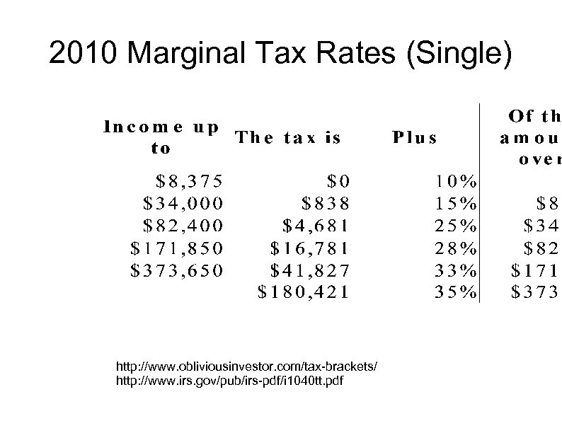 2010 Marginal Tax Rates (Single) http: //www. obliviousinvestor. com/tax-brackets/ http: //www. irs. gov/pub/irs-pdf/i 1040 tt. pdf