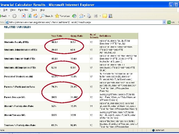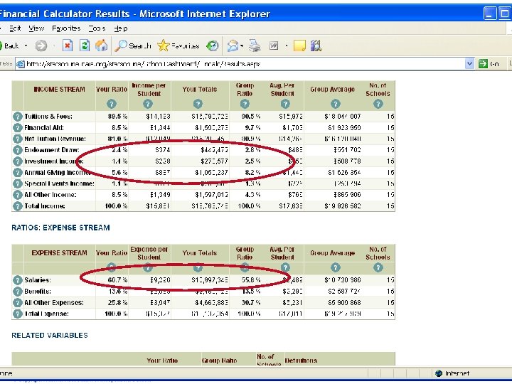 Step 2: Ratio & Variance Analysis Step Two provides a snapshot of current key ratios as a basis for posing the principal strategic financial planning questions. Goal: To benchmark your school's key ratios against those of comparable schools to determine where you exceed the norm and can use your relative position advantageously, where you fall below the norm and can improve, or where you deliberately ignore the norm and can articulate why. Questions To Ask: § How do your school's "dashboard indicators" compare to those of similar schools? § In a variance analysis, where and why do your ratios look different? § What are you doing that gives you a financially sustainable advantage? § What are others doing that give them better ratios and better results? How can you emulate them? Tasks To Undertake: § Give your CFO/Business Manager the assignment to develop a Dashboard Indicators Report using NAIS's School Indicators / Financial Calculator