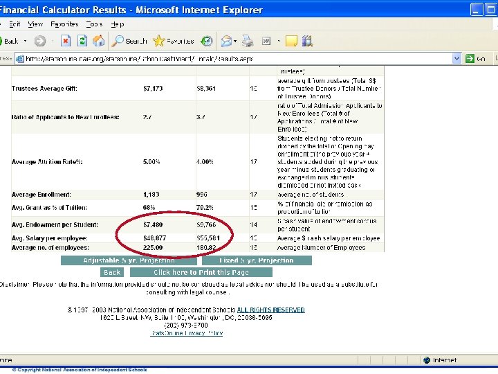 Step 6: Projecting Preferred Scenarios § Step Six will allow your school to experiment with varying financial scenarios by projecting and adopting a plan for an alternative and preferred financial future. § Goal: To project varying financial alternatives, experimenting with the major variables that determine a school's financial bottom line. § Questions To Ask: When you enter your school's assumptions about growth in each key budget area into the NAIS School Indicators/Financial Calculator, how do the results project out over a five-year period?