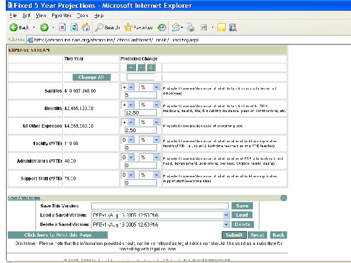 Step 6: Projecting Preferred Scenarios § Tasks To Undertake: Go to the NAIS Stats. Online site, and enter your school’s financial planning assumptions into the NAIS Stats. Online Financing Schools Calculator to project, save, print, and debate several financial futures. – First run: What if you changed nothing (i. e. , projecting your school's last five years' budgetary trends for the next five years)? – Second run: What happens when you project all of your assumptions from Step Three (Financial Planning Assumptions) into the calculator? – Third run: What happens when you project all of your goals from Step Four (Data Markers of School Success) into the calculator? – Fourth run: What would it take to make the five-year projections "work" (budget balances or surpluses) to address your assumptions and meet your success markers to create your re-engineered and preferred financial future?