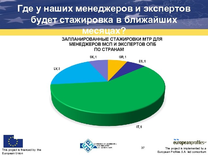 Где у наших менеджеров и экспертов будет стажировка в ближайших месяцах? This project is financed by the European Union 37 The project is implemented by a European Profiles S. A. led consortium