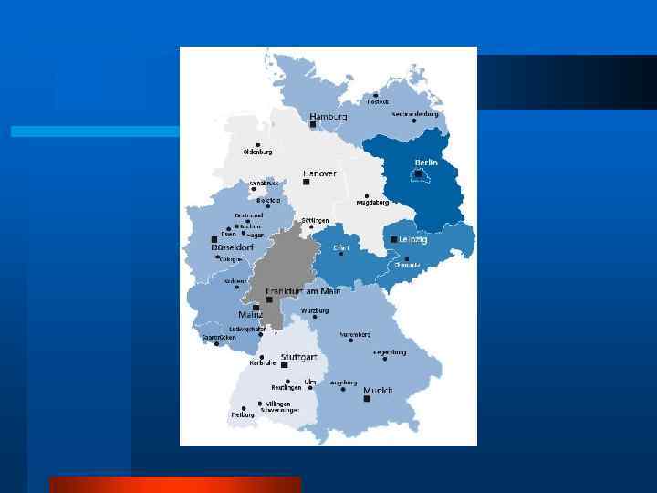 l 3. Каждая федеративная единица (земля) имеет свою фондовую биржу Всего действует восемь фондовых бирж: в Гамбурге, Ганновере, Берлине, Бремене, Дюссельдорфе, Мюнхене, Франкфурте и Штутгарте.