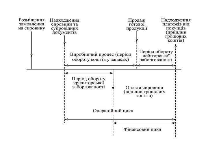 6. Тривалість операційного циклу (ОЦ) ОЦ = Тз + Тдз де Тз – період обороту запасів, днів; Тдз – період обороту дебіторської заборгованості, днів. Позитивна тенденція: зменшення Показує період від моменту придбання запасів до погашення дебіторської заборгованості