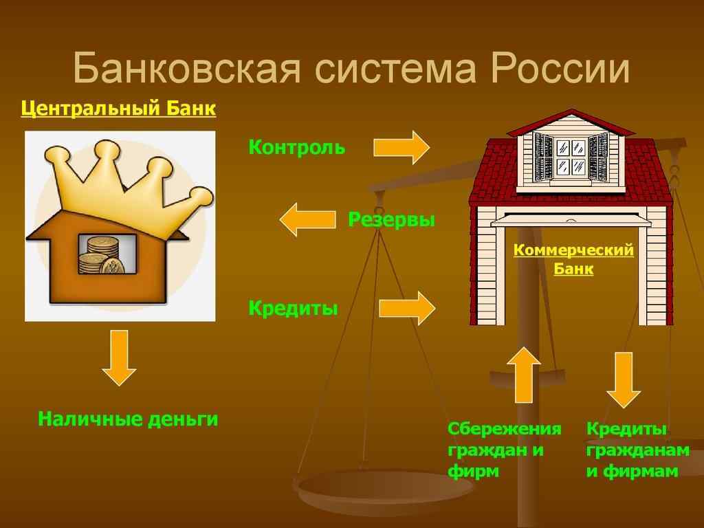 Банковская система РФ Банковская система Российской Федерации — это совокупность взаимосвязанных элементов, которая включает Центральный банк, кредитные организации, состоящие из коммерческих банков и других кредитно-расчетных учреждений, иногда объединенных в рамках холдингов, а также банковскую инфраструктуру и банковское законодательство. . .