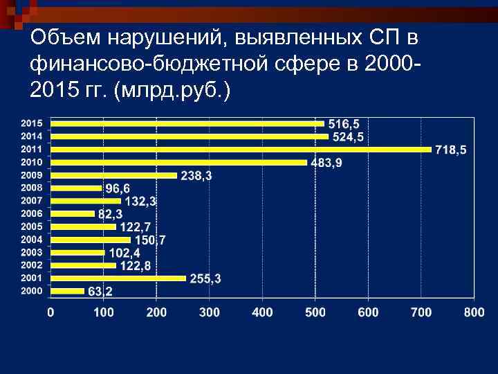 Объем нарушений, выявленных СП в финансово-бюджетной сфере в 20002015 гг. (млрд. руб. )