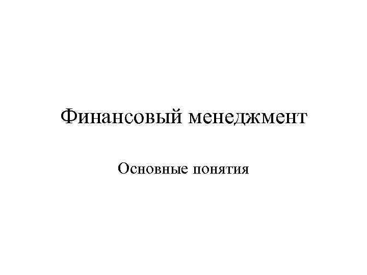 Финансовый менеджмент Основные понятия