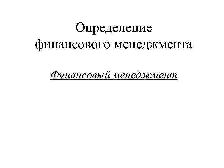 Определение финансового менеджмента Финансовый менеджмент