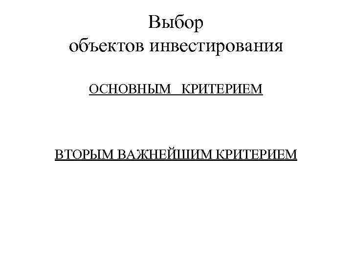 Выбор объектов инвестирования ОСНОВНЫМ КРИТЕРИЕМ ВТОРЫМ ВАЖНЕЙШИМ КРИТЕРИЕМ