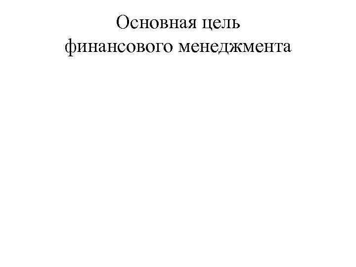 Основная цель финансового менеджмента