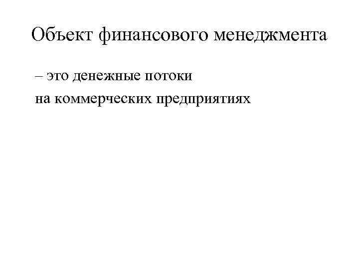 Объект финансового менеджмента – это денежные потоки на коммерческих предприятиях