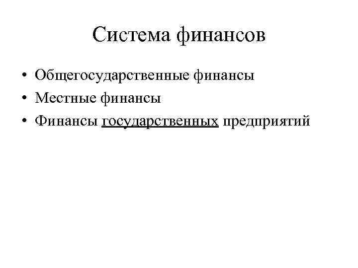 Система финансов • Общегосударственные финансы • Местные финансы • Финансы государственных предприятий