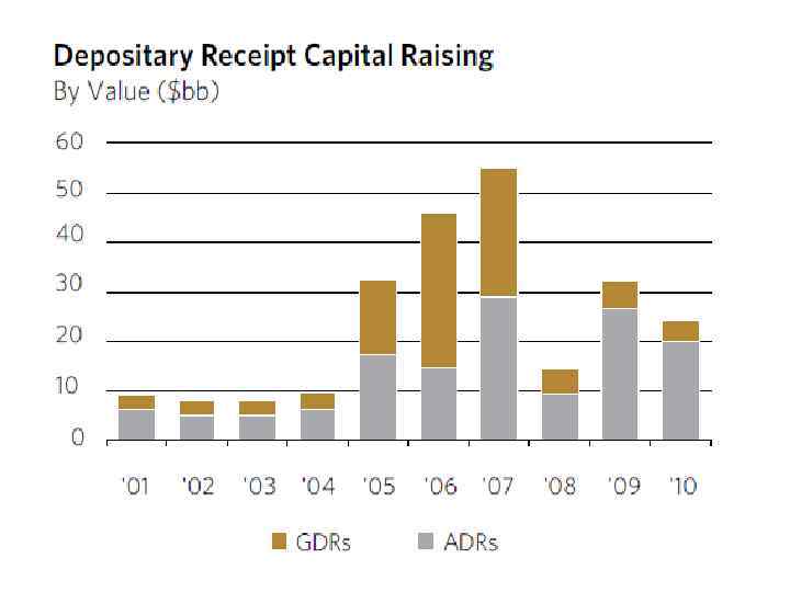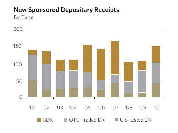 ОБЩЕЕ КОЛИЧЕСТВО ПРОГРАММ СПОНСИРУЕМЫХ ДЕПОЗИТАРНЫХ РАСПИСОК Источник: The Depositary Receipt Markets 2010 BNY-Mellon, 2011