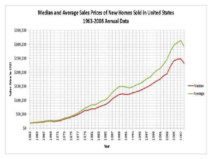 Средняя цена проданного односемейного дома (медиана), долл. 1990 1991 1992 1993 1994 1995 1996 1997 1998 1999 2000 2001 2002 2003 2004 2005 2006 2007 2008 U. S. 96 400 101 400 104 000 107 200 111 300 114 600 119 900 126 000 132 800 138 000 143 600 153 100 165 000 178 800 195 400 219 600 221 900 219 000 198 100 Northeast 141 400 143 600 142 000 141 500 138 400 139 600 143 500 147 300 150 500 149 800 158 700 179 300 209 900 243 800 271 300 271 900 279 100 266 400 Midwest 76 300 80 500 84 200 87 000 90 600 96 100 102 300 108 200 115 600 121 000 125 300 132 500 139 300 145 600 154 600 170 600 167 800 165 100 154 100 South 84 700 88 100 91 100 93 700 94 900 96 900 102 400 108 400 115 000 118 900 126 300 135 500 146 000 156 700 170 400 181 700 183 700 179 300 169 200 West 138 600 144 500 141 100 141 800 149 200 150 600 157 100 165 700 175 900 185 300 194 600 207 000 230 100 251 800 286 400 335 300 342 700 335 000 271 500