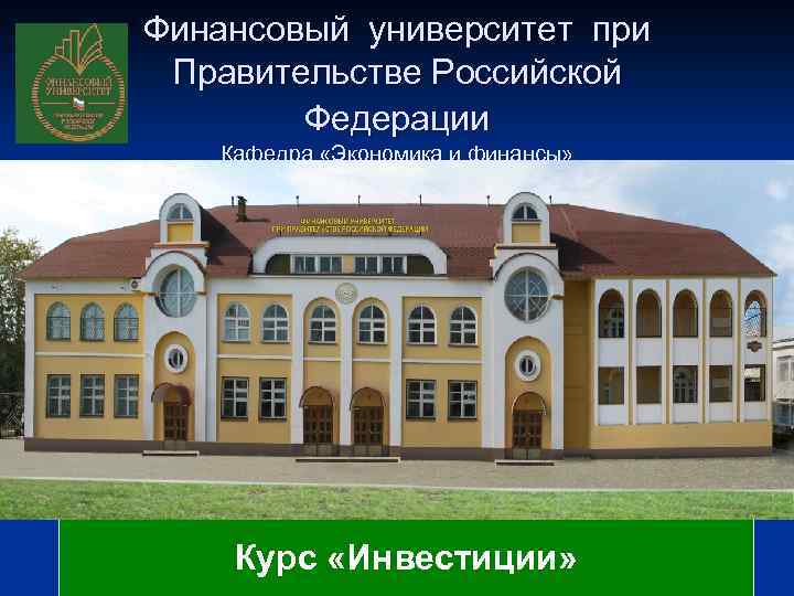 Финансовый университет при Правительстве Российской Федерации Кафедра «Экономика и финансы» Курс «Инвестиции»