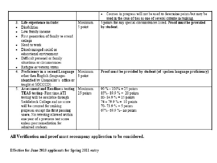 How do nursing schools feel about W’s and F’s? Cypress –One W in the prerequisites is OK. Cerritos –Only allows 1 W, D, or F for prerequisites. Can repeat 1 prerequisite to improve the grade. Golden West –They have a formula for the number of W, D, or Fs on the transcripts. Long Beach City –Only allows 1 W, D, or F for prerequisites. Can repeat 1 prerequisite to improve the grade. Santa Ana – Student can petition to have the W, D, or F removed. GPA will calculate both grades until substandard grade removed. The number of W, D, or Fs does not affect entry. The first passing grade is the grade used to calculate points for entry into the program.