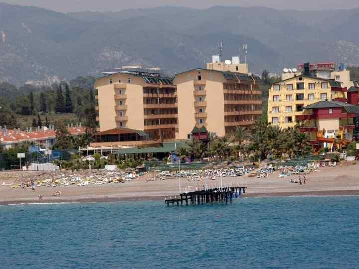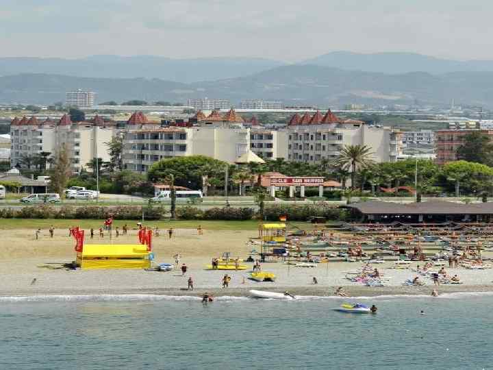 Sailor’s Beach Club 4* Площадь 22 000 кв. м, , четыре 4 -х этажных корпуса На берегу моря, пляж мелкогалечный, есть пирс Бесплатно: фитнес-центр, турецкая баня, сауна, 2 водные горки Расстояние до Кемера – 7 км 300 номеров, S стандартного номера 22 кв. м Стоимость тура на человека при проживании в двухместном номере 41 000 руб. /38 000 руб. Wi-fi в лобби бесплатно, есть интернет-кафе (платно) Рейтинг на www. top-hotel. ru 4, 23 Примечания – отель береговой, красивая зеленая территория, стоит в живописном месте