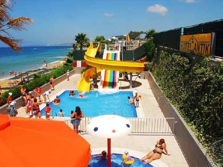 Hotel Antik &Garden 4* Площадь 15 000 кв. м, основное здание и несколько малоэтажных бунгало Первая береговая линия, море через дорогу, подземный переход Бесплатно: фитнес-центр, сауна, турецкая баня, джакузи, есть 2 водные горки Расстояние до Аланьи – 20 км 200 номеров, S стандартного номера 21 кв. м Стоимость тура на человека при проживании в двухместном номере 42 000 руб. Wi-fi в лобби бесплатно Рейтинг на www. top-hotel. ru 4, 48 Примечания – хороший пляж, ухоженная территория, приятная архитектура, развитая инфраструктура.