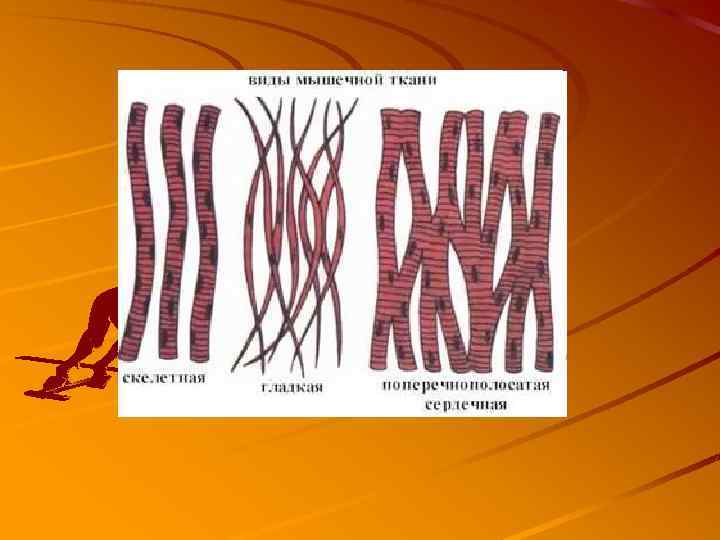 Типы тканей 1. эпителиальная или пограничную (кожа, слизистые); 2. соединительная - составляет внутреннюю среду организма (костная, хрящевая, кровь, лимфа, жировая и др. ); 3. мышечная ; 4. нервная. 4