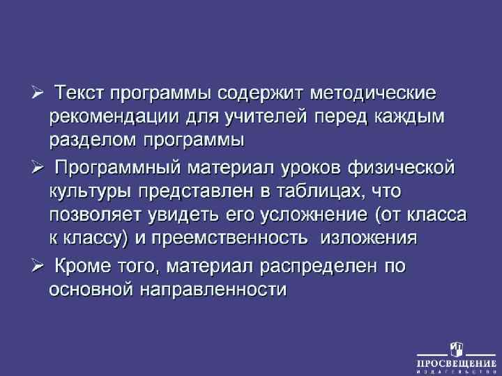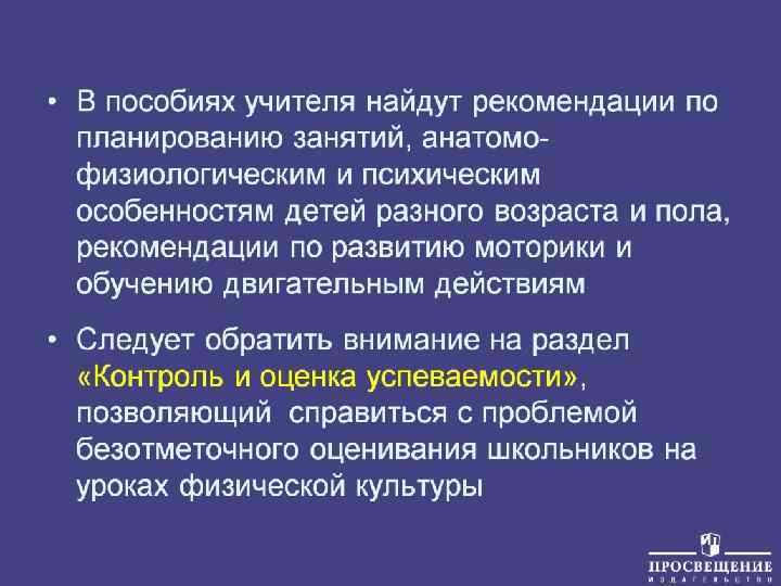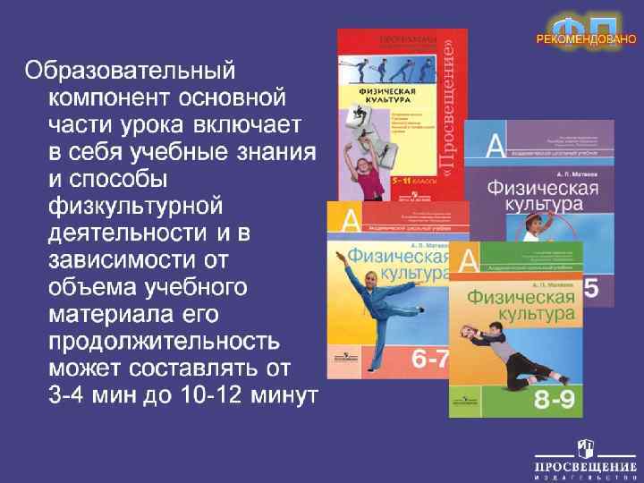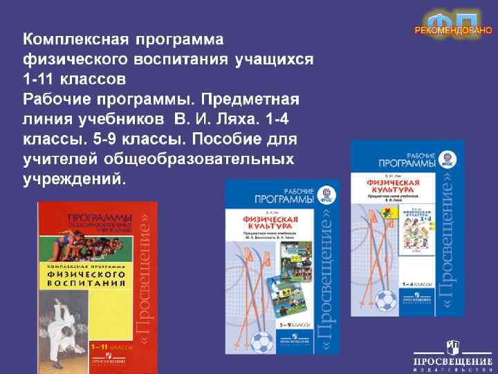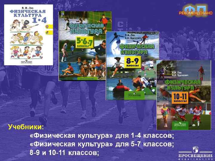 Кроме комплексной программы физического воспитания УМК содержит учебники и методические пособия для учащихся всех возрастов