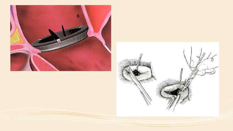 • Операция при стенозе сводится к рассечению спаянных створок клапанов коииссуротомия. • При недостаточности клапанного аппарата производят искусственное протезирование клапанов.
