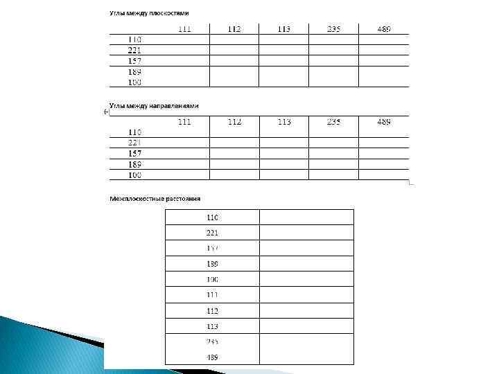 Задание для РГЗ Сделать расчёты межплоскостных расстояний, углов между направлениями и плоскостями для кристаллов различных классов (сингоний)(Задача 1 -3). Расчёты выполнить с использование метрического тензора прямого и обратного пространств. Рассчитать картину дифракции электронов для заданного кристалла в заданном направлении