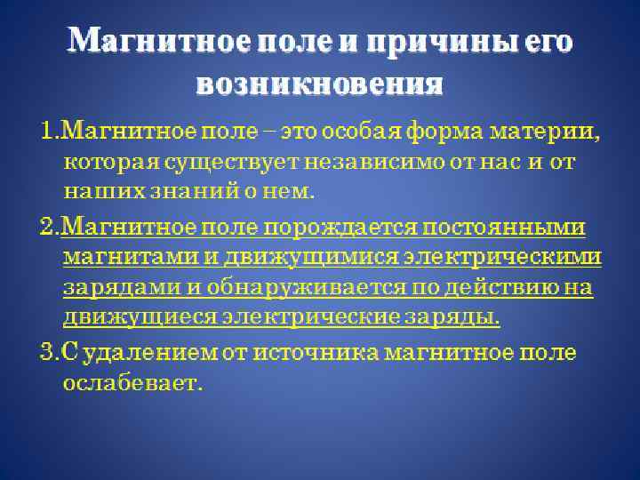 Что нужно знать о магнитных линиях? • 1. Магнитные линии – замкнутые кривые, поэтому МП называют вихревым. Это означает, что в природе не существует магнитных зарядов. 2. Чем гуще расположены магнитные линии, тем МП сильнее. • 3. Если магнитные линии расположены параллельно другу с одинаковой густотой, то такое МП называют однородным. • 4. Если магнитные линии искривлены – это значит, что сила, действующая на магнитную стрелку в разных точках МП, разная. Такое МП называют неоднородным.