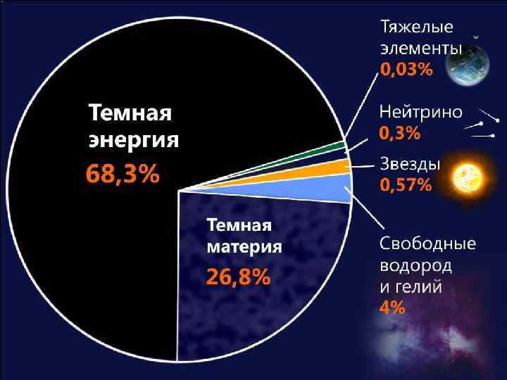Только вещество (не считая темную энергию: ~2%весь видимый мир (звезды + газ + твердые тела) ~98% Темная масса: барионная (7%) (межгалактический газ? ) + небарионная(93%)