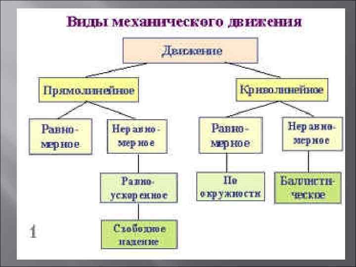 Основные характеристики движения траектория - линия, вдоль которой движется материальная точка; пройденный путь - расстояние, пройденное точкой по е. траектории; перемещение - вектор, направленный от положения материальной точки в начальный момент времени наблюдения к е. положению в конце промежутка времени наблюдения; скорость - вектор, характеризующий направление и быстроту перемещения точки; ускорение - вектор, характеризующий направление и быстроту изменения скорости точки относительно тела отсчета