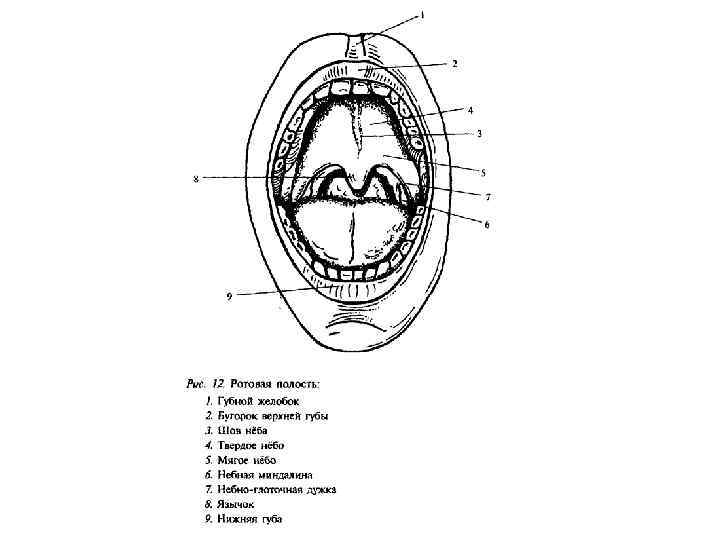• Мягкое небо при спокойном дыхании расслаблено, частично закрывает вход в ротовую полость из глотки. • Во время глубокого дыхания, зевания и речи небная занавеска, образуемая мягким небом и маленьким язычком, поднимается вверх, открывая проход в полость рта и одновременно закрывая проход в носоглотку.