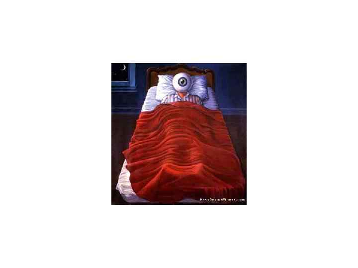 Быстрый сон • ЭЭГ: быстрые колебания электрической активности, близкие по значению к бета-волнам. Это напоминает состояние бодрствования. • Вместе с тем (и это парадоксально!) в эту стадию человек находится в полной неподвижности, вследствие резкого падения мышечного тонуса. • Однако глазные яблоки очень часто и периодически совершают быстрые движения под сомкнутыми веками. • Существует отчетливая связь между БДГ и сновидениями. Если в это время разбудить спящего, то в 90 % случаев можно услышать рассказ о ярком сновидении.