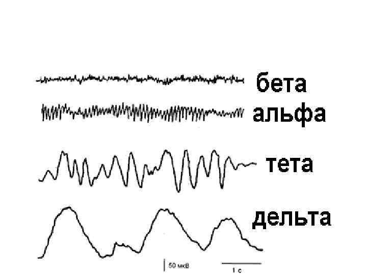 Ритмы ЭЭГ • • альфа — 8— 13 Гц, бета — 14— 40 Гц, тета — 4— 6 Гц, дельта — 0, 5— 3 Гц, • гамма — выше 40 Гц и др. .