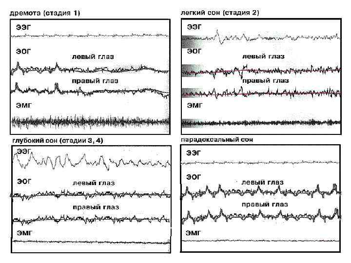 • [править] Электросон • [править] История изучения сна • В истории «науки о сне» важную роль сыграли исследования М. Манасеиной (1843— 1903), ученицы физиолога И. Р. Тарханова. В 1870 -х гг. она изучала значение сна для организмa на щенках. Анализируя результаты, М. Манасеина пришла к выводу, что сон для организма важнее пищи. • Современные представления о природе сна сформировались во второй половине ХХ века, после появления методов регистрации биоэлектрической активности головного мозга (электроэнцефалограмма, ЭЭГ), мышц (электромиограмма, ЭМГ) и глаз (электроокулограмма, ЭОГ). Крупным достижением в этой области было открытие в 1950 -е гг. Н. Клейтманом, У. Дементом (США) и М. Жуве (Франция) явления «парадоксального сна» .