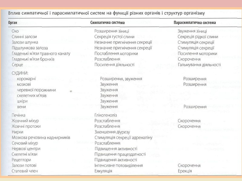 СХЕМА БУДОВИ СИМПАТИЧНОЇ ТА ПАРАСИМПАТИЧНОЇ НЕРВОВОЇ СИСТЕМИ