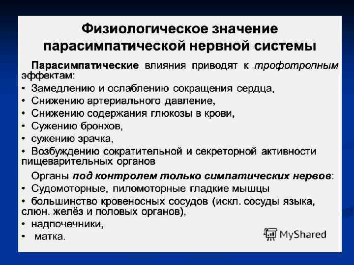 Симпатическая и парасимпатическая иннервация автономной нервной системы