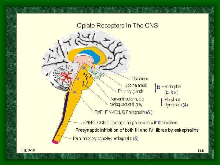 Антиноцицептивная система Центральное серое вещество Ядра шва Норадреналин, альфа-2 адренорецепторы серотонин Сеть нейронов спинного мозга, выделяющих эндоопиаты