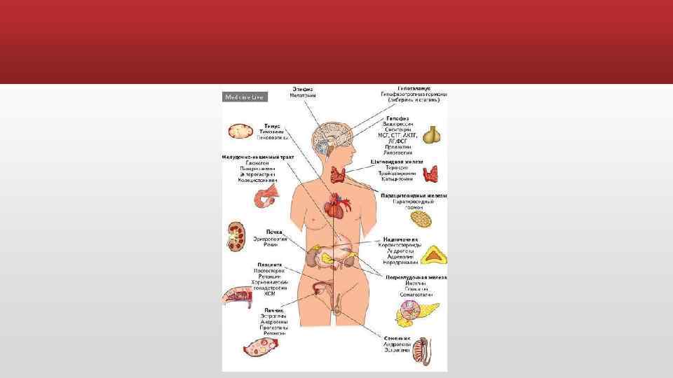 Гормон Функция Какой железой вырабатывается Адренокортикотропный гормон Гипофиз Управляет секрецией гормонов коры надпочечников Альдостерон Надпочечники Участвует в регуляции водно-солевого обмена: удерживает натрий и воду, выводит калий Вазопрессин (антидиуретический гормон) Гипофиз Регулирует количество выделяемой мочи и вместе с альдостероном контролирует артериальное давление Глюкагон Поджелудочная железа Повышает уровень глюкозы в крови Гормон роста Гипофиз Управляет процессами роста и развития; стимулирует синтез белков Инсулин Поджелудочная железа Кортикостероиды Надпочечники Лютеинизирующий гормон и фолликулостимулирующий гормон Гипофиз Понижает уровень глюкозы в крови; влияет на обмен углеводов, белков и жиров в организме Оказывают действие на весь организм; обладают выраженными противовоспалительными свойствами; поддерживают уровень сахара в крови, артериальное давление и мышечный тонус; участвуют в регуляции водно-солевого обмена Управляют детородными функциями, в том числе выработкой спермы у мужчин, созреванием яйцеклетки и менструальным циклом у женщин; ответственны за формирование мужских и женских вторичных половых признаков (распределение участков роста волос, объем мышечной массы, строение и толщина кожи, тембр голоса и, возможно, даже черты личности) Окситоцин Гипофиз Вызывает сокращение мышц матки и протоков молочных желез Паратгормон Паращитовидные железы Управляет формированием костей и регулирует выведение кальция и фосфора с мочой Прогестерон Яичники Готовит внутреннюю оболочку матки для внедрения оплодотворенной яйцеклетки, а молочные железы — к выработке молока Пролактин Гипофиз Вызывает и поддерживает выработку молока в молочных железах Ренин и ангиотензин Тиреоидные гормоны Почки Щитовидная железа Контролируют артериальное давление Регулируют процессы роста и созревания, скорость обменных процессов в организме Тиреотропный гормон Гипофиз Стимулирует выработку и секрецию гормонов щитовидной железы Эритропоэтин Эстрогены Почки Яичники Стимулирует образование эритроцитов Управляют развитием женских половых органов и вторичных половых признаков