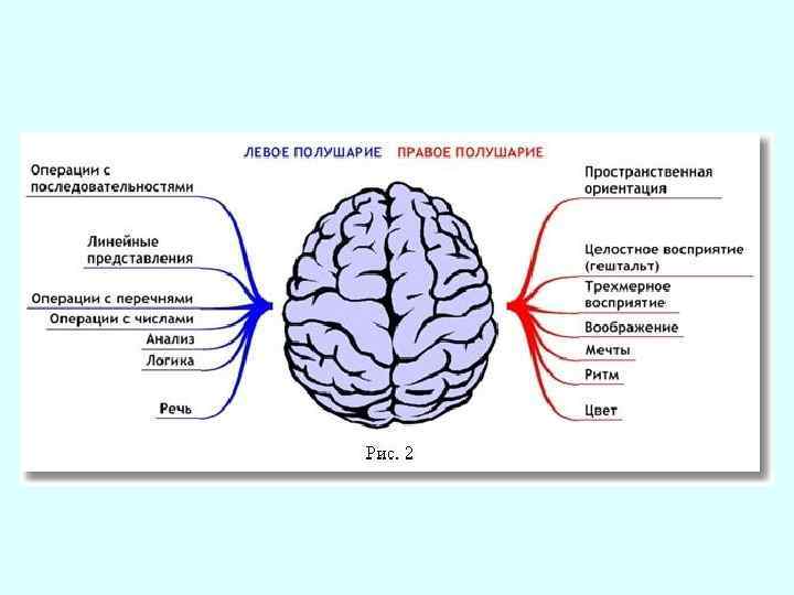 Конкретный тип полушарного реагирования не формируется при рождении. • На ранних этапах онтогенеза у большинства детей выявляется образный, правополушарный тип реагирования, и только в определенном возрасте (как правило, от 10 -ти до 14 -ти лет) закрепляется тот или иной фенотип, преимущественно характерный для данной популяции (Аршавский В. ). • Это подтверждается и данными о том, что у неграмотных людей функциональная асимметрия головного мозга меньше, чем у грамотных. • Асимметрия усиливается и в процессе обучения: левое полушарие специализируется в знаковых операциях, и правое полушарие - в образных.