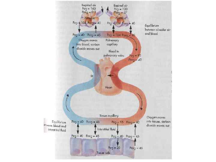 ХИМИЧЕСКИЕ РЕАКЦИИ, ПРОИСХОДЯЩИЕ В КРОВИ ПРИ ОБМЕНЕ ГАЗОВ В ЛЕГКИХ И ТКАНЯХ КА Н 2 О + СО 2 ННb СО 2 из тканей О 2+ ННв. СО 2 KHb. O 2 Н 2 СО 3 КНв. О 2 K+ + Hb + O 2 НСО 3 - + Н+ в клетки + СО 2 ННb. CO 2 HCO 3 Na+ + Cl- Na. HCO 3 КНСО 3 Na. Cl в эритроциты