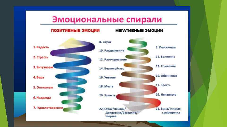 фундаментальные эмоции формируют комплексы: 1. комплекс неполноценности; 2. комплекс вины, а также - другие комплексы; 3. тревожность, 4. депрессия, 5. враждебность, 6. влюбленность.